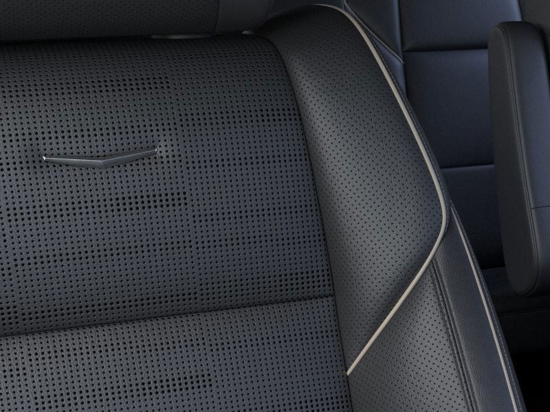JET BLACK, LEATHER SEATING SURFACES WITH PRECISION PERFORATED INSERTS