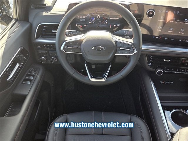 4WD, Jet Black/Victory Red Leather, 1st and 2nd Row Color-Keyed Carpeted Floor Mats, 2-Way Power Driver Lumbar Seat Adjuster, 2-Way Power Front Passenger Lumbar Seat Adjuster, 2nd Row Power Release 60/40 Split-Folding Bench Seat, 3-Spoke Wrapped Steering Wheel, 3.23 Rear Axle Ratio, 3rd Row 60/40 Power-Folding Split-Bench Seat, 3rd Row Manual 60/40 Split-Folding Bench Seats, 3rd row seats: split-bench, 4-Wheel Disc Brakes, 6 Speakers, 6-Speaker Audio System Feature, 8-Way Power Driver Seat Adjuster, 8-Way Power Front Passenger Seat Adjuster, ABS brakes, Air Conditioning, Alloy wheels, AM/FM radio: SiriusXM with 360L, Apple CarPlay/Android Auto, Auto High-beam Headlights, Auto-Dimming Inside Rear-View Mirror, Auto-dimming Rear-View mirror, Automatic temperature control, Bose 10-Speaker Centerpoint Surround Audio System Feature, Brake assist, Bright Front and Rear Door Sill Plates, Bumpers: body-color, Color-Keyed Carpeting Floor Covering, Comfort Package, Compass, Delay-off headlights, Driver door bin, Driver vanity mirror, Dual Exhaust System, Dual front impact airbags, Dual front side impact airbags, Dual-Pane Power Panoramic Sunroof, Electronic Stability Control, Emergency communication system: OnStar and Chevrolet connected services capable, Exterior Parking Camera Rear, Floor Console with Storage Area, Four wheel independent suspension, Front anti-roll bar, Front Bucket Seats, Front Center Armrest, Front dual zone A/C, Front fog lights, Front LED Fog Lamps, Front reading lights, Frontal Driver and Outboard Passenger Airbags, Fully automatic headlights, Garage door transmitter, Heated 2nd Row Outboard Seats, Heated door mirrors, Heated Driver and Front Passenger Seats, Heated front seats, Heated Steering Wheel, Illuminated entry, Interior Camera, Key Card, LED Headlamps with LED Daytime Running Lamps, LED Tail Lamps, License Plate Front Mounting Package, Low tire pressure warning, Memory seat, Memory Settings, Memory Settings For Driver, Navigation system: Google built-in compatibility (select service plan required, terms and limitations apply), Occupant sensing airbag, Outside Heated Power-Adjustable Mirrors, Outside temperature display, Overhead airbag, Overhead console, Panic alarm, Passenger door bin, Passenger vanity mirror, Perforated Leather Seat Trim, Power door mirrors, Power driver seat, Power Liftgate, Power passenger seat, Power Release 2nd Row Bucket Seats, Power steering, Power windows, Preferred Equipment Group 1SP, Premium audio system: Chevrolet Infotainment 3 Premium, Premium Smooth Ride Suspension, Radio data system, Radio: 17.7 Diagonal Advanced Color LCD Display, Rain sensing wipers, Rear air conditioning, Rear anti-roll bar, Rear Power Liftgate, Rear reading lights, Rear seat center armrest, Rear window defroster, Rear window wiper, Remote keyless entry, Remote Start, RST Exterior Features, Security system, Set of 4 Wheel Locks, SiriusXM with 360L Trial Subscription, Speed control, Speed-sensing steering, Split folding rear seat, Spoiler, Steering wheel mounted audio controls, Tachometer, Telescoping steering wheel, Tilt steering wheel, Traction control, Trip computer, Universal Home Remote, USB Ports, Variably intermittent wipers, Voltmeter, Wheels: 22 x 9 Bright Machined, Wireless Phone Charging, 4WD, Jet Black/Victory Red Leather.Black 4WD 10-Speed Automatic with Overdrive EcoTec3 5.3L V8