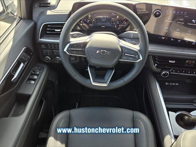4WD, Black Leather, 1st and 2nd Row Color-Keyed Carpeted Floor Mats, 2-Speed Active Electronic AutoTrac Transfer Case, 2-Way Power Driver Lumbar Seat Adjuster, 2-Way Power Front Passenger Lumbar Seat Adjuster, 2nd Row Power Release 60/40 Split-Folding Bench Seat, 3 Years SiriusXM, 3-Spoke Wrapped Steering Wheel, 3.23 Rear Axle Ratio, 3rd Row 60/40 Power-Folding Split-Bench Seat, 3rd Row All-Weather Floor Liners, 3rd Row Manual 60/40 Split-Folding Bench Seats, 3rd row seats: split-bench, 4-Wheel Disc Brakes, 6 Speakers, 6-Speaker Audio System Feature, 8-Way Power Driver Seat Adjuster, 8-Way Power Front Passenger Seat Adjuster, ABS brakes, Advanced Trailering Package, Air Conditioning, All-Weather Cargo Mat, Alloy wheels, AM/FM radio: SiriusXM with 360L, Apple CarPlay/Android Auto, Auto High-beam Headlights, Auto-Dimming Inside Rear-View Mirror, Auto-dimming Rear-View mirror, Automatic temperature control, Black Tubular Assist Steps, Blind Zone Steering Assist with Trailering, Bose 10-Speaker Centerpoint Surround Audio System Feature, Brake assist, Bright Front and Rear Door Sill Plates, Bumpers: body-color, Color-Keyed Carpeting Floor Covering, Comfort Package, Compass, Delay-off headlights, Driver door bin, Driver vanity mirror, Dual Exhaust System, Dual front impact airbags, Dual front side impact airbags, Electronic Stability Control, Emergency communication system: OnStar and Chevrolet connected services capable, Exterior Parking Camera Rear, Extra Capacity Cooling System, First and Second Rows Premium Floor Liners, Floor Console with Storage Area, Four wheel independent suspension, Front anti-roll bar, Front Bucket Seats, Front Center Armrest, Front dual zone A/C, Front fog lights, Front High-Approach Angle Fascia, Front LED Fog Lamps, Front reading lights, Frontal Driver and Outboard Passenger Airbags, Fully automatic headlights, Garage door transmitter, Heated 2nd Row Outboard Seats, Heated door mirrors, Heated Driver and Front Passenger Seats, Heated front seats, Heated Steering Wheel, Hill Descent Control, Hitch View with Pan/Zoom Image Adjustment, Illuminated entry, Integrated Trailer Brake Controller, Interior Camera, Key Card, Leather-Appointed Seat Trim, LED Headlamps with LED Daytime Running Lamps, LED Tail Lamps, License Plate Front Mounting Package, Low tire pressure warning, Max Trailering Package, Memory seat, Memory Settings, Memory Settings For Driver, Navigation system: Google built-in compatibility (select service plan required, terms and limitations apply), Occupant sensing airbag, Outside Heated Power-Adjustable Mirrors, Outside temperature display, Overhead airbag, Overhead console, Panic alarm, Passenger door bin, Passenger vanity mirror, Power door mirrors, Power driver seat, Power Liftgate, Power passenger seat, Power Release 2nd Row Bucket Seats, Power steering, Power windows, Preferred Equipment Group 2Z7, Premium audio system: Chevrolet Infotainment 3 Premium, Premium Liner Protection Package, Premium Smooth Ride Suspension, Radio data system, Radio: 17.7 Diagonal Advanced Color LCD Display, Rain sensing wipers, Rear air conditioning, Rear anti-roll bar, Rear Power Liftgate, Rear reading lights, Rear seat center armrest, Rear window defroster, Rear window wiper, Red Horizontal-Mounted Recovery Hooks, Remote keyless entry, Remote Start, Security system, SiriusXM with 360L Trial Subscription, Smart Trailer Integration Indicator, Speed control, Speed-sensing steering, Split folding rear seat, Spoiler, Steering wheel mounted audio controls, Tachometer, Telescoping steering wheel, Tilt steering wheel, Traction control, Trip computer, Universal Home Remote, USB Ports, Variably intermittent wipers, Voltmeter, Wheels: 20 x 9 Bright Machined Aluminum, Wireless Phone Charging, Z71 Exterior Features, 4WD, Black Leather. Recent Arrival!