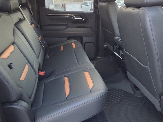 10-Speed Automatic, 4WD, Jet Black With Kalahari Accents Leather, 10-Way Power Driver Seat Adjuster with Lumbar, 10-Way Power Passenger Seat Adjuster with Lumbar, 120-Volt Bed Mounted Power Outlet, 120-Volt Interior Power Outlet, 2 Charge/Data USB Ports Inside Center Console, 2 Type-C Charge-Only Rear USB Ports, 2 USB Ports, 220 Amp Alternator, 3 Years SiriusXM, 3.23 Rear Axle Ratio, 4-Wheel Disc Brakes, 7 Speakers, ABS brakes, Air Conditioning, All-Weather Floor Liners with AT4 Logo, Alloy wheels, AM/FM radio: SiriusXM with 360L, Apple CarPlay/Android Auto, AT4 Preferred Package, AT4 Premium Package, Auto High-beam Headlights, Auto-dimming door mirrors, Auto-dimming Rear-View mirror, Auto-Locking Rear Differential, Automatic Emergency Braking, Automatic temperature control, Black Chrome Grille Insert Bars, Black Sport Step, Block heater, Brake assist, Buckle to Drive, Bumpers: body-color, Cargo Tie-Downs (4), Color-Keyed Carpeting Floor Covering, Compass, Console-Mounted Safe, Deep-Tinted Glass, Delay-off headlights, Driver door bin, Driver Memory, Driver vanity mirror, Dual front impact airbags, Dual front side impact airbags, Electric Rear-Window Defogger, Electronic Stability Control, Emergency communication system: OnStar, Engine Block Heater, Floor-Mounted Center Console, Following Distance Indicator, Forward Collision Alert, Front anti-roll bar, Front Bucket Seats, Front Center Armrest, Front dual zone A/C, Front fog lights, Front Pedestrian Braking, Front Premium Floor Liners with Removable Carpet Insert, Front Rain-Sensing Wipers, Front reading lights, Front wheel independent suspension, Fully automatic headlights, GMC MultiPro Tailgate Step Lights, HD Surround Vision, Heated 2nd Row Outboard Seats, Heated door mirrors, Heated Driver and Front Outboard Passenger Seating, Heated front seats, Heated rear seats, Heated steering wheel, Heavy-Duty Air Filter, Hill Descent Control, Hitch Guidance, Hitch View, Illuminated entry, in-Vehicle Trailering System App, Integrated Trailer Brake Controller, IntelliBeam Automatic High Beam on/Off, Keyless Open and Start, Lane Keep Assist with Lane Departure Warning, LED Cargo Area Lighting, Low tire pressure warning, Memory seat, Navigation System, Occupant sensing airbag, Off-Road High Clearance Step, Off-Road Suspension, OnStar Services Capable, Outside temperature display, Overhead airbag, Overhead console, Panic alarm, Passenger door bin, Passenger vanity mirror, Perforated Front Leather Seat Trim, Perimeter Lighting, Power Door Locks, Power door mirrors, Power driver seat, Power Front Passenger Windows with Express Up/Down, Power Front Windows with Driver Express Up/Down, Power passenger seat, Power Rake and Telescoping Steering Column, Power Rear Windows with Express Down, Power Sliding Rear Window with Rear Defogger, Power steering, Power windows, Preferred Equipment Group 4SB, Premium Bose 7-Speaker Sound System, Push Button Start, Radio data system, Radio: Premium GMC Infotainment Audio System, Rain sensing wipers, Rear Cross Traffic Braking, Rear Pedestrian Detection, Rear Premium Floor Liners with Removable Carpet Insert, Rear reading lights, Rear seat center armrest, Rear step bumper, Rear Wheelhouse Liners, Rear window defroster, Red Recovery Hooks, Remote keyless entry, Remote Vehicle Starter System, Safety Alert Seat, Security system, SiriusXM with 360L Trial Subscription, Speed control, Speed-sensing steering, Split folding rear seat, Spray-on Pickup Bedliner with GMC Logo, Steering Wheel Audio Controls, Steering wheel mounted audio controls, Tachometer, Telescoping steering wheel, Theft Deterrent System (unauthorized Entry), Tilt steering wheel, Traction control, Trailer Camera Provisions, Trailer Side Blind Zone Alert, Trailering Package, Trip computer, Ultrasonic Front and Rear Park Assist, Universal Home Remote, Variably intermittent wipers, Ventilated Driver and Front Passenger Seats, Ventilated front seats, Voltme