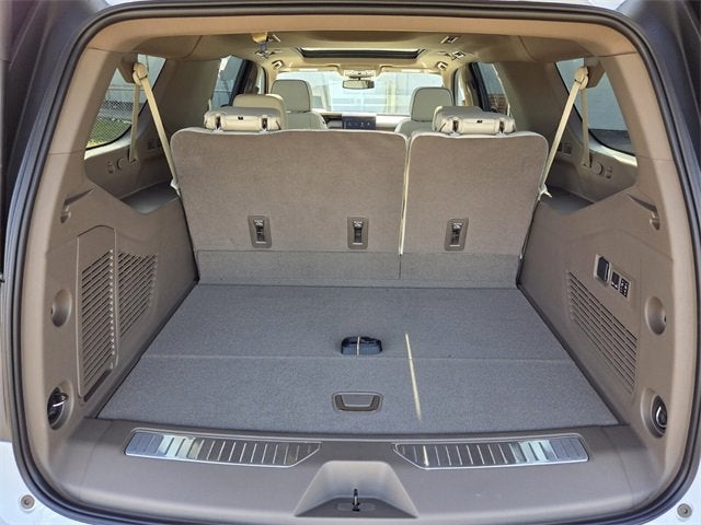 4WD, 10 Speakers, 15 Diagonal Multi-Color Head-Up Display, 3 Years OnStar One, 3 Years SiriusXM, 3.23 Rear Axle Ratio, 3rd row seats: split-bench, 4-Way Power Driver Lumbar Seat Adjuster, 4-Way Power Front Passenger Lumbar Seat Adjuster, 4-Wheel Disc Brakes, ABS brakes, Adaptive suspension, Air Conditioning, Alloy wheels, AM/FM radio: SiriusXM with 360L, Apple CarPlay/Android Auto, Audio memory, Auto High-beam Headlights, Auto-dimming door mirrors, Auto-dimming Rear-View mirror, Auto-leveling suspension, Automatic temperature control, AutoSense Hands-Free Power Liftgate, Bodyside moldings, Bose 10-Speaker Surround with CenterPoint, Brake assist, Bright Front and Rear Door Sill Plates, Bumpers: body-color, Compass, Delay-off headlights, Driver door bin, Driver vanity mirror, Dual Exhaust System, Dual front impact airbags, Dual front side impact airbags, Dual-Pane Panoramic Power Sunroof, Electronic Stability Control, Emergency communication system: OnStar and GMC connected services capable, Exterior Parking Camera Rear, Four wheel independent suspension, Front anti-roll bar, Front Bucket Seats, Front Center Armrest, Front dual zone A/C, Front fog lights, Front reading lights, Fully automatic headlights, Galvano Bodyside Moldings, Garage door transmitter, Heads-Up Display, Heated door mirrors, Heated Driver and Front Passenger Seats, Heated front seats, Heated rear seats, Heated steering wheel, Illuminated entry, License Plate Front Mounting Package, Low tire pressure warning, Magnetic Ride Control Suspension, Memory seat, Navigation system: GMC Connected Navigation, Occupant sensing airbag, Outside temperature display, Overhead airbag, Overhead console, Panic alarm, Passenger door bin, Passenger vanity mirror, Perforated Heather and Ventilated Driver and Front Passenger Seats, Perforated Leather Seating Surfaces, Power door mirrors, Power driver seat, Power Liftgate, Power passenger seat, Power Release 2nd Row Bucket Seats, Power steering, Power Tilt and Telescopic Steering Column, Power windows, Power-Retractable Assist Steps, Preferred Equipment Group 5SA, Radio: 16.8 Diagonal Premium GMC Infotainment System, Rain sensing wipers, Rear air conditioning, Rear anti-roll bar, Rear reading lights, Rear window defroster, Rear window wiper, Remote keyless entry, Security system, SiriusXM with 360L, Speed control, Speed-sensing steering, Split folding rear seat, Spoiler, Steering wheel memory, Steering wheel mounted audio controls, Sun and Power Step Package, Tachometer, Telescoping steering wheel, Tilt steering wheel, Traction control, Trip computer, Turn signal indicator mirrors, Variably intermittent wipers, Ventilated front seats, Voltmeter, Wheels: 20 x 9 6-Spoke Polished Aluminum, 4WD. Glacier White Tricoat 2026 GMC Yukon XL Denali 4WD 10-Speed Automatic with Overdrive EcoTec3 6.2L V8