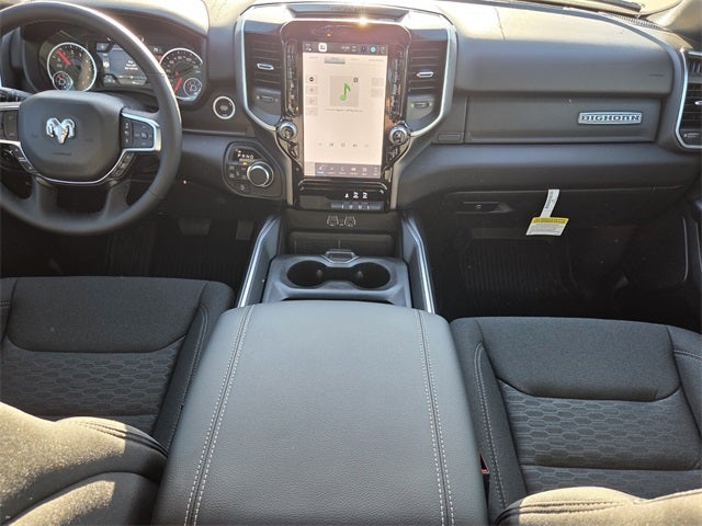 115V Auxiliary Power Outlet, 115V Auxiliary Rear Power Outlet, 12 Touchscreen Display, 2nd Row in Floor Storage Bins, 3 Rear Seat Head Restraints, 4 Way Front Headrests, 4-Wheel Disc Brakes, 400W Inverter, 48V Belt Starter Generator, 4G LTE Wi-Fi Hot Spot, 6 Speakers, 9 Amplified Speakers with Subwoofer, ABS brakes, Accent Color Door Handles, Accent Color Premium Power Mirrors, Accent Color Tailgate Handle, Air Conditioning, Air Conditioning ATC with Dual Zone Control, Alloy wheels, AM/FM radio, Anti-Spin Differential Rear Axle, Apple CarPlay, Apple CarPlay/Android Auto, Auto High-beam Headlights, Auto Power-Folding Mirrors, Auto-Dimming Exterior Driver Mirror, Auto-Dimming Rear-View Mirror, Big Horn Level 2 Equipment Group, Black Exterior Mirrors, Black Exterior Truck Badging, Black Headlamp Bezels, Black Interior Accents, Black Painted Exterior Mirrors Caps, Black Premium Power Mirrors, Black Tail Lamp Bezels, Body Color Fender Flares, Body Color Front Bumper, Body Color Rear Bumper with Step Pads, Brake assist, Bucket Seats, Bumpers: chrome, Center Console Parts Module, Cloth Bucket Seats, Cluster 7.0 TFT Color Display, Compass, Configurable Drive Mode, Connected Travel and Traffic Services, Connectivity - US/Canada, Convex Wide-Angle Exterior Mirror Insert, Delay-off headlights, Deluxe Cloth Bucket Seats, Disassociated Touchscreen Display, Driver door bin, Dual Exhaust with Black Tips, Dual front impact airbags, Dual front side impact airbags, Electronic Stability Control, Exterior Mirrors Courtesy Lamps, Exterior Mirrors with Heating Element, Exterior Mirrors with Supplemental Signals, Front anti-roll bar, Front Bucket Seats, Front Center Armrest w/Storage, Front fog lights, Front reading lights, Front Seat Back Map Pockets, Front wheel independent suspension, Full Length Floor Console, Fully automatic headlights, Global Telematics Box Module, Glove Box Lamp, Google Android Auto, GPS Antenna Input, GPS Navigation, Grille Black Surround Black Mesh, HD Radio, Heated door mirrors, Heated Front Seats, Heated Steering Wheel, Illuminated entry, Integrated Center Stack Radio, Integrated Voice Command with Bluetooth®, Leather Wrapped Steering Wheel, LED Dome Lamp with on/Off Switch, LED Footwell Lighting, Low tire pressure warning, Manual Adjust 4-Way Driver Seat, Manual Adjust 4-Way Front Passenger Seat, Manual Folding Exterior Mirrors, Media Hub with 2 Charge Only USBs, MOPAR Front and Rear Rubber Floor Mats, Night Edition, Occupant sensing airbag, Outside temperature display, Overhead airbag, Overhead console, Overhead LED Lamps, Panic alarm, ParkView Rear Back-Up Camera, Passenger door bin, Passenger vanity mirror, Power 2-Way Driver Lumbar Adjust, Power Adjust 8-Way Driver Seat, Power Adjustable Pedals, Power door mirrors, Power steering, Power windows, Premium Overhead Console, Quick Order Package 21Z Big Horn, Radio data system, Radio: Uconnect 5 Navigation with 12.0 Display, Radio: Uconnect 5 W with 8.4 Display, RAM Grille Badge - Black, RAM Grille Badge - Chrome, Rear 60/40 Folding Seat, Rear anti-roll bar, Rear Center Armrest, Rear Power Sliding Window, Rear step bumper, Rear Wheelhouse Liners, Rear Window Defroster, Remote keyless entry, Remote Tailgate Release, Security Alarm, SiriusXM Radio Service, SiriusXM with 360L, Speed control, Steering Wheel Mounted Audio Controls, Sun Visors with Illuminated Vanity Mirrors, Supplier Part Tracking (J-1), Tachometer, Telescoping steering wheel, Tilt steering wheel, Traction control, Trip computer, Universal Garage Door Opener, USB Host Flip, Variably intermittent wipers, Voltmeter, Wheels: 20 x 9.0 Aluminum Painted Clad. Diamond Black Crystal Pearlcoat 2026 Ram 1500 Big Horn/Lone Star 4WD 8-Speed Automatic 3.0L I6 Price includes: $1000 - 2026 Southeast BC Retail Bonus Cash. Exp. 03/02/2026 $3500 - 2026 National Retail Consumer Cash . Exp. 03/02/2026
