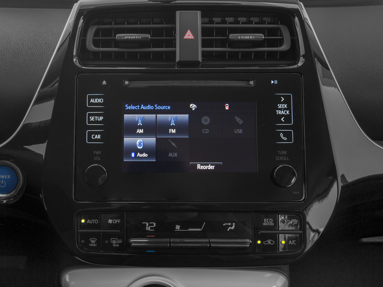 - Radio: Entune Premium Audio w/Navigation/App Suite -inc: the Entune Multimedia Bundle, 7 inch high resolution touch-screen w/split screen display, AM/FM CD player, 6 speakers, auxiliary audio jack, USB 2.0 port w/iPod connectivity and control, advanced voice recognition, hands-free phone capability, phone book access and music streaming via Bluetooth® wireless technology, Siri Eyes Free, Entune App Suite (includes Destination Search, iHeartRadio, MovieTickets.com, OpenTable, Pandora, Facebook Places, Yelp and Slacker Radio; real-time info including traffic, weather, fuel prices, sports and stocks), HD Radio, HD predictive traffic and doppler weather overlay, AM/FM cache radio, SiriusXM All Access Radio w/3-month complimentary trial and Gracenotes album cover art Access to Entune services is subscription free. See toyota.com/entune for details.