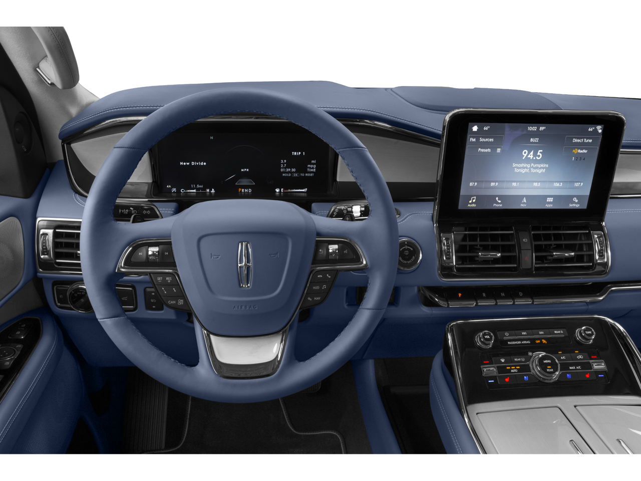 20 Speakers, 2nd Row Heated 40/Console/40 Seat, 3.73 Axle Ratio, 3rd row seats: split-bench, 4-Wheel Disc Brakes, ABS brakes, Adaptive suspension, Adjustable pedals, Air Conditioning, All-Weather Floor Liners w/Fr&Rr Carpet Floor Mats, Alloy wheels, AM/FM radio: SiriusXM, Audio memory, Auto High-beam Headlights, Auto tilt-away steering wheel, Auto-dimming door mirrors, Auto-dimming Rear-View mirror, Auto-leveling suspension, Automatic temperature control, Bodyside moldings, Brake assist, Bumpers: body-color, Cargo Convenience Package, Chrome Roof Rack w/Black Crossbars, Compass, Delay-off headlights, Driver door bin, Driver vanity mirror, Driver's Seat Mounted Armrest, Dual front impact airbags, Dual front side impact airbags, Electronic Stability Control, Emergency communication system: 911 Assist, Equipment Group 800A Black Label, Exterior Parking Camera Rear, Four wheel independent suspension, Front anti-roll bar, Front Bucket Seats, Front dual zone A/C, Front fog lights, Front reading lights, Fully automatic headlights, Garage door transmitter, Genuine wood console insert, Genuine wood door panel insert, GVWR: 7,800 lbs Payload Package, Head restraints memory, Heads-Up Display, Heated door mirrors, Heated front seats, Heated rear seats, Heated steering wheel, HVAC memory, Illuminated entry, Knee airbag, Leather steering wheel, Lincoln Play, Low tire pressure warning, Memory seat, Navigation System, Occupant sensing airbag, Outside temperature display, Overhead airbag, Overhead console, Panic alarm, Passenger door bin, Passenger seat mounted armrest, Passenger vanity mirror, Pedal memory, Power adjustable front head restraints, Power adjustable rear head restraints, Power door mirrors, Power driver seat, Power Liftgate, Power moonroof: Panoramic Vista Roof, Power passenger seat, Power steering, Power windows, Radio data system, Radio: Revel Ultima AM/FM/HD/MP3 Audio System, Rain sensing wipers, Rear air conditioning, Rear anti-roll bar, Rear audio controls, Rear reading lights, Rear window defroster, Rear window wiper, Reclining 3rd row seat, Remote keyless entry, Security system, SiriusXM Radio, Speed control, Speed-sensing steering, Speed-Sensitive Wipers, Split folding rear seat, Spoiler, Steering wheel memory, Steering wheel mounted audio controls, SYNC 3 Communications & Entertainment System, Tachometer, Telescoping steering wheel, Tilt steering wheel, Traction control, Trip computer, Turn signal indicator mirrors, Variably intermittent wipers, Venetian Lthr Htd/Ventilated Captain's Chairs (B), Ventilated front seats, Voice-Activated Touchscreen Navigation System, Wheels: 22 21-Spoke Bright Machined Aluminum. Recent Arrival! Clean CARFAX. Crystal Blue 10-Speed Automatic