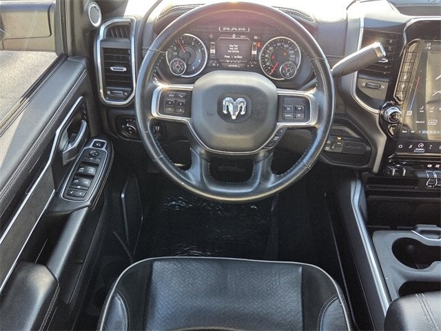 Recent Arrival! CARFAX One-Owner. Odometer is 47358 miles below market average! 10 Speakers, 115V Auxiliary Rear Power Outlet, 12 Touchscreen Display, 17 Speaker harman kardon Premium Sound, 2 Way Rear Headrest Seat, 220 Amp Alternator, 2nd Row In Floor Storage Bins, 3.73 Axle Ratio, 4 Way Front Headrests, 4-Wheel Disc Brakes, 4G LTE Wi-Fi Hot Spot, 5th Wheel/Gooseneck Towing Prep Group, 8.4 Touchscreen Display, ABS brakes, Active Noise Control System, Adjustable pedals, Air Conditioning, Alexa Built-In, All R1 High Radios, All Radio Equipped Vehicles, Alloy wheels, AM/FM radio: SiriusXM, Apple CarPlay, Apple CarPlay/Android Auto, Auto High Beam Headlamp Control, Auto-dimming Rear-View mirror, Automatic temperature control, Black Exterior Mirrors, Black Exterior Truck Badging, Black Headlamp Bezels, Black Interior Accents, Black Ram Head Tailgate Badge, Black Tail Lamp Bezels, Black Wheel Center Hub, Bluetooth® Handsfree Phone & Audio, Body Color Door Handles, Body Color Grille Surround, Brake assist, Bumpers: chrome, Chrome Exterior Mirrors, Compass, Connected Travel & Traffic Services, Connectivity - US/Canada, Delay-off headlights, Disassociated Touchscreen Display, Driver door bin, Driver vanity mirror, Dual front impact airbags, Dual front side impact airbags, Electronic Stability Control, Electronically Controlled Throttle, Exterior Mirrors Courtesy Lamps, Exterior Mirrors w/Heating Element, Exterior Mirrors w/Memory, Exterior Mirrors w/Supplemental Signals, Foam Bottle Insert (Door Trim Panel), For Details, Visit DriveUconnect.com, For More Info, Call 800-643-2112, Front anti-roll bar, Front Center Armrest w/Storage, Front dual zone A/C, Front fog lights, Front License Plate Bracket, Front reading lights, Front Seat Back Map Pockets, Fully automatic headlights, Garage door transmitter, Global Telematics Box Module (TBM), Gloss Black Grille Billets/Accents, Google Android Auto, GPS Antenna Input, GPS Navigation, HD Radio, Heated door mirrors, Heated Front Seats, Heated front seats, Heated Second Row Seats, Heated Steering Wheel, Heated steering wheel, Illuminated entry, Integrated Center Stack Radio, Integrated Voice Command w/Bluetooth®, Laramie Level B Equipment Group (DISC), Leather steering wheel, Leather Trim 40/20/40 Bench Seat, Low tire pressure warning, Manufacturer's Statement of Origin, Mirror Running Lights, Mirror-Mounted Aux Reverse Lamps, MOPAR Front & Rear Rubber Floor Mats, MOPAR Spray In Bedliner, Night Edition, Occupant sensing airbag, Off-Road Information Pages, Outside temperature display, Overhead airbag, Overhead console, Painted Flat Cab-Length Side Steps, Painted Front Bumper, Painted Rear Bumper, Panic alarm, ParkView Rear Back-Up Camera, Passenger door bin, Passenger vanity mirror, Power 2-Way Driver Lumbar Adjust, Power 2-Way Passenger Lumbar Adjust, Power Adjust 8-Way Driver Seat, Power Adjust 8-Way Front Passenger Seat, Power Adjustable Convex Aux Mirrors, Power Adjustable Pedals w/Memory, Power Black Tow Mirrors w/Convex Spotter & Memory, Power Chrome Tow Mirrors w/Convex Spotter & Memory, Power door mirrors, Power driver seat, Power Folding Mirrors, Power passenger seat, Power steering, Power windows, Quick Order Package 2HH Laramie, Radio data system, Radio: Uconnect 5 Nav w/12.0 Display, Radio: Uconnect 5 Nav w/8.4 Display, Radio: Uconnect 5 W w/8.4 Display, Radio/Driver Seat/Mirrors/Pedals Memory, Rain Sensitive Windshield Wipers, Rear 60/40 Folding Seat, Rear anti-roll bar, Rear reading lights, Rear seat center armrest, Rear step bumper, Rear window defroster, Remote keyless entry, Remote Tailgate Release, Security system, Selectable Tire Fill Alert, SiriusXM Radio Service, SiriusXM Satellite Radio, SiriusXM w/360L, Speed control, Split folding rear seat, Steering wheel mounted audio controls, Tachometer, Tilt steering wheel, Tip Start, Tow Hooks, Traction control, Trailer Tow Mirrors, Trip computer, Turn signal indicator mirrors, Variably intermittent wipers, Vendor Painted Cargo Bo